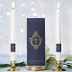 Boy Baptism Navy Blue Gold Cross in Crest Elegant Unity Candle Set
