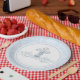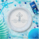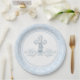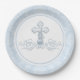 Boy baptism paper plates with pretty blue pearl swirl cross on a blue damask background. These elegant blue baptism paper plates are easily customized by simply adding text. You can also move the cross as needed on these blue baptism, christening and first communion paper plates.