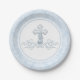 Boy baptism paper plates with pretty blue pearl swirl cross on a blue damask background. These elegant blue baptism paper plates are easily customized by simply adding text. You can also move the cross as needed on these blue baptism, christening and first communion paper plates.