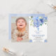 You can edit the design on the back through our Design Tool and selecting "Layers." By customizing the back of your Boy Baptism Photo Invitation Navy Blue Flowers Invitation, you can have a more complete invitation and present more information to your potential guests, but don’t worry - you don’t have to add a design to the back if you prefer to just have a design in the front.