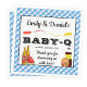 Boy bbq baby shower napkins with bbq food on a blue gingham background. These bbq baby shower paper napkins are easily personalized with your text.