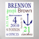 A great poster to hang up in the nursery. Send me an email with the contact the seller button, with the information and colors you want and I'll make it for you to purchase. Please do not purchase until I've sent you the link with your babies information. It will be a direct view not public.