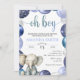 Boy Blue Balloon Cute Elephant Baby Shower Invite
