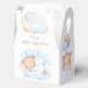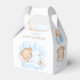 We Can Bearly Wait baby shower favor box. You can choose from 3 sizes of these gable favor boxes simply by clicking on the STYLE dropbox. The soft pastel blue, ivory and beige colors with a cute sleeping baby bear boy on the clouds with the balloons is so adorable for a baby boy's baby shower. Easily personalize the text. Great for a lovely baby boy shower party all year round.