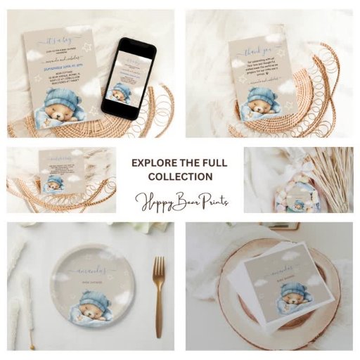 Cute, minimal, modern , watercolor It's a boy bear clouds baby boy shower collection.