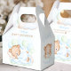 Oh boy! We Can Bearly Wait baby shower favor box. You can choose from 3 sizes of these gable favor boxes simply by clicking on the STYLE dropbox. The soft pastel blue, green and beige colors with a cute sleeping baby bear boy on the clouds with the balloons is so adorable for a baby boy's baby shower. Easily personalize the text. Great for a lovely baby boy shower party all year round. - Kate Eden Art