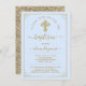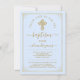 Plain white envelopes are included with paper invitations and will come to fit the invitation size you select. If you don’t need the envelopes, you may choose to not receive them by selecting the dropdown below "Envelopes" and choosing "None." If you’d like to have a design on your envelopes, you can browse all of these available envelopes to find the design that complements your Boy Classic Blue Gold Baptism Invitation.