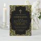 Boy Confirmation Black Faux Gold Leaves Religious Invitation
