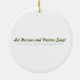 Lightweight, smooth, pure white ornament with nice sheen. Perfect size to be seen from across the room ... and to attract closer inspection! Price was great for ordering enough for the whole family! Clear, bold black design just as requested. Matches the order exactly. Just so nice!