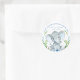 Boy elephant baby shower favor stickers with cute baby elephant on a blue floral greenery background. These elephant baby shower stickers can be personalized with your text.
