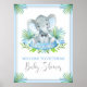 Elephant baby shower welcome signs with adorable watercolor baby boy elephant wearing a cute bow tie on a jungle greenery background. This baby shower welcome sign is easily customized with your text. You can also change the background color.