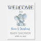 Nacy blue floral alphabet and elephant baby shower welcome sign.