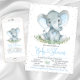 Plain white envelopes are included with paper invitations and will come to fit the invitation size you select. If you don’t need the envelopes, you may choose to not receive them by selecting the dropdown below "Envelopes" and choosing "None." If you’d like to have a design on your envelopes, you can browse all of these available envelopes to find the design that complements your Boy Elephant Glitter Baby Shower Invitation.