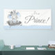 Elephant prince baby shower banner with adorable elephant prince on a blue polka dot background. This boy elephant baby shower banner is easily customized with the text of your choice in the font style you prefer.
