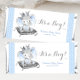 Elephant baby shower Hershey bars with adorable baby boy elephant wearing a pretty baby blue and silver crown sitting on a silver pillow on a blue dot background. These elephant baby shower Hershey candy bars are easily customized for your event by simply adding your text.