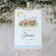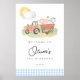 Adorable farm themed welcome sign featuring farm animals, a barn and blue gingham print.