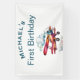 Boy First Birthday Custom Name Airplane Aviator Banner