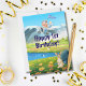 Celebrate a little boy’s big milestone with this adorable first birthday card featuring a brave teddy bear pilot soaring above mountains and a dreamy landscape of flowers, a sparkling lake, and a curious bunny below. With soft colors and storybook charm, this card captures the magic of turning ONE. The inside features a sweet rhyming message that celebrates joy, growth, and all the wonder of baby’s first year. Customize text inside or leave blank to handwrite your own note. Perfect for parents, grandparents, or friends to give with a present.