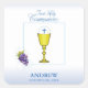 Receiving communion for the first time is very special occasion. This congratulations gift, souvenir, giveaway and party essential for a boy on his First Holy Communion will be perfect with the chalice and host and grapes with a soft blue background.