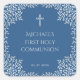 Boy First Communion Classic Blue Silver Leaves Square Sticker