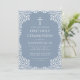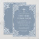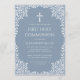 Boy First Communion Dusty Blue White Leaves Cross Invitation