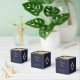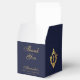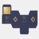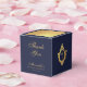 An elegant navy and gold favor box, recommended for a boy's religious confirmation. The flap is mostly faux gold foil. The rest is navy blue.