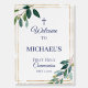 Welcome guests to your son’s First Holy Communion with this elegant sign featuring a classic greenery leaf border and sophisticated navy blue lettering. The minimalist design blends timeless tradition with modern style—perfect for a religious celebration with a natural, refined touch. Display it at the entrance, gift table, or ceremony space to create a warm and meaningful first impression.
