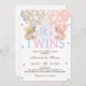 Boy Girl Twins Bear With Balloons Baby Shower Invitation
