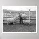 Boy holding up a bundle of wool on the Pitchfork Ranch near Meeteetse, Wyoming.