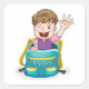 Boy in Backpack Waving Fun School Kid Square Sticker