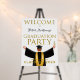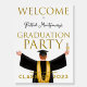 Graduation Party Welcome Sign features man graduate with red hair in graduation cap and gown. Modern gold lettering reads Welcome to his Graduation Party. Easily personalize your grad's name, class year and school they're graduating from for the perfect graduation welcome decor!