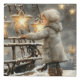 A magical little boy in winter in the snow, and under the stars. A seasonal boy's nursery wall art design for winter, or all year long.