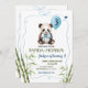 Boy Panda with Bow Blue Handdrawn Birthday Invitation