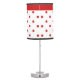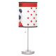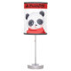 This is an adorable table lamp for a baby boy's nursery or little boy's bedroom. The front of the lampshade has an adorable baby boy panda with a red top and red dots on a white background on the sides and back of the lampshade. This lampshade can be personalized by adding a little boy's name on the front of the lamp.