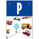 Celebrate the birthday of your little boy with a custom pattern of some of his favorite vehicles -- fire trucks, police cars, helicopters and planes, trains, taxis, construction vehicles, and more! This fun party bunting flag banner adds an extra special personalized touch to your little one's birthday party celebration. Add Happy Birthday and the age of your little kid on top of the blue background (or edit text per your preference). You may also add two photos of the birthday boy!