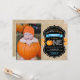 Boy Pumpkin First Birthday Invitation with custom photo, orange and blue, chalkborad and burlap background. For further customization, please click the "Customize it" button and use our design tool to modify this template.