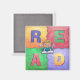 READ Colorful Art Magnet features our colorful art with our signature textures of yellow, red, green and blue with the letters READ in contrasting colors and a boy reading in the center digitally painted by Traci Van Wagoner. This fun pro book poster is perfect for kids, librarians, bibliophiles, teachers, book lovers, readers, educators, and anyone who loves to read and loves books. Buy our READ Poster and make a visit to your local library to fill your life with books and reading.