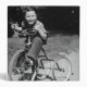 Young boy (6-7) riding tricycle in park, (B&W), portrait | George Marks | AssetID: 57260622