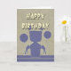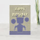 Blue boy robot with balloons and textured background for this birthday card. 2014 © Design by Julia Bryant.