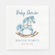 Cute baby boy shower paper party napkins featuring a rocking horse design.