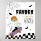 Add a cool vibe to your boy’s Halloween birthday party with this retro-style favors sign featuring a playful ghost on a skateboard. Perfect for spooky celebrations with a fun twist, this printable sign guides guests to their treats in style.