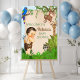 Boy safari baby shower sign with adorable dark hair baby boy on a safari animal jungle background. This boy safari baby shower welcome sign is easily personalized with your text.