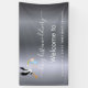 For a drive thru baby shower celebrating a baby boy. A faux silver metallic looking background. With a cute flying stork holding a baby boy. Personalize and add the name of the mom-to-be. With the text "Long distance delivery" and "Welcome to". Long distance delivery is written with a modern and trendy hand lettered style script with swashes. White letters. Simple, minimalistic and stylish!