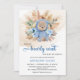 Boy teddy bear pampas grass blue flowers greenery invitation