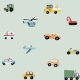 Vehicles include cars, airplanes, and boats in a minimalist style
