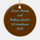 An adorable and unique Christmas ornament for twin boys. Two peas in a pod with a brown and green polka dot background makes this Christmas decoration the cutest one on the tree! Personalize the text on the back for a wonderful keepsake! Makes a great holiday or baby shower gift. Original artwork by Night Owl's Menagerie, 2010.