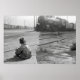 Boy Watching Trains, 1939. Vintage Photo Poster