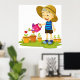 A boy watering plants in the garden. This design looks really effective on these Poster