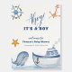 Nautical baby shower theme, Ahoy! It's a boy baby shower, celebrate upcoming baby shower with our navy blue cute rustic modern watercolor nautical sailboat, anchor, starfish, ocean whale, wheel in beige color, backside with stripes pattern. You can personalize your own text and color via "personalize this design".