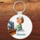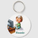 Cute keychain with a boy with glasses playing video games on the TV. Personalize the text with your name or custom message. Illustration by Patricia Alvarez.